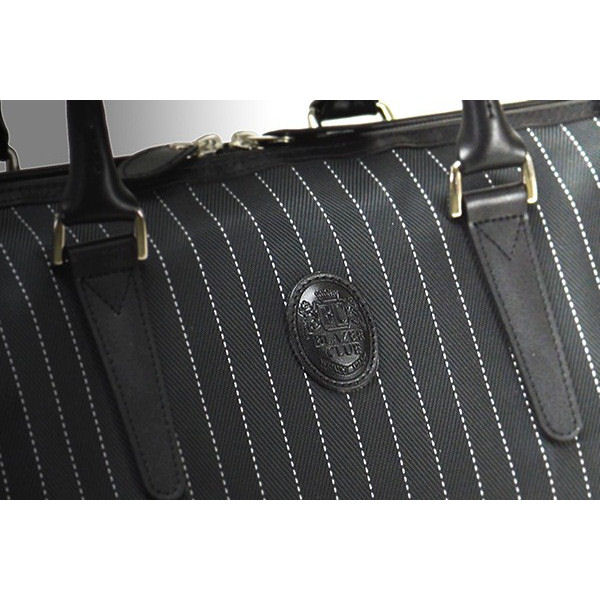 ストライプ柄を織り込んだ生地を使い、スマートなデザインに仕上げたボストンバッグ。