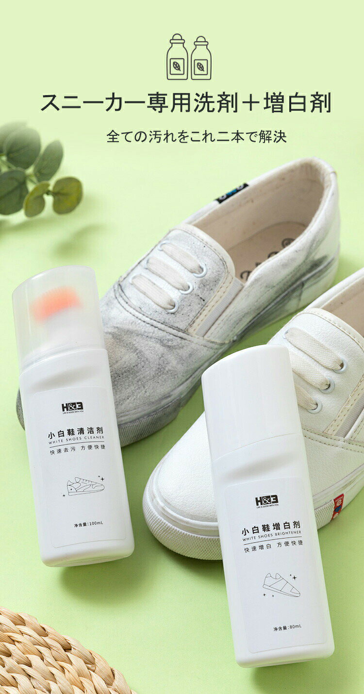 靴クリーナー+増白剤セット 泡 スニーカークリーナー 革 泥や黄ばみ 汚れ落とし 白 アディダス スタンスミス