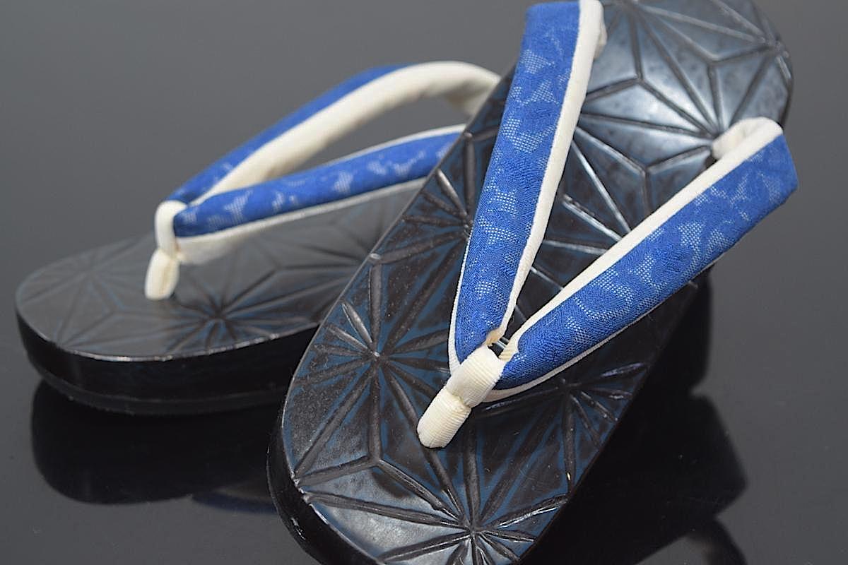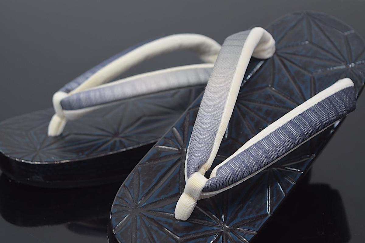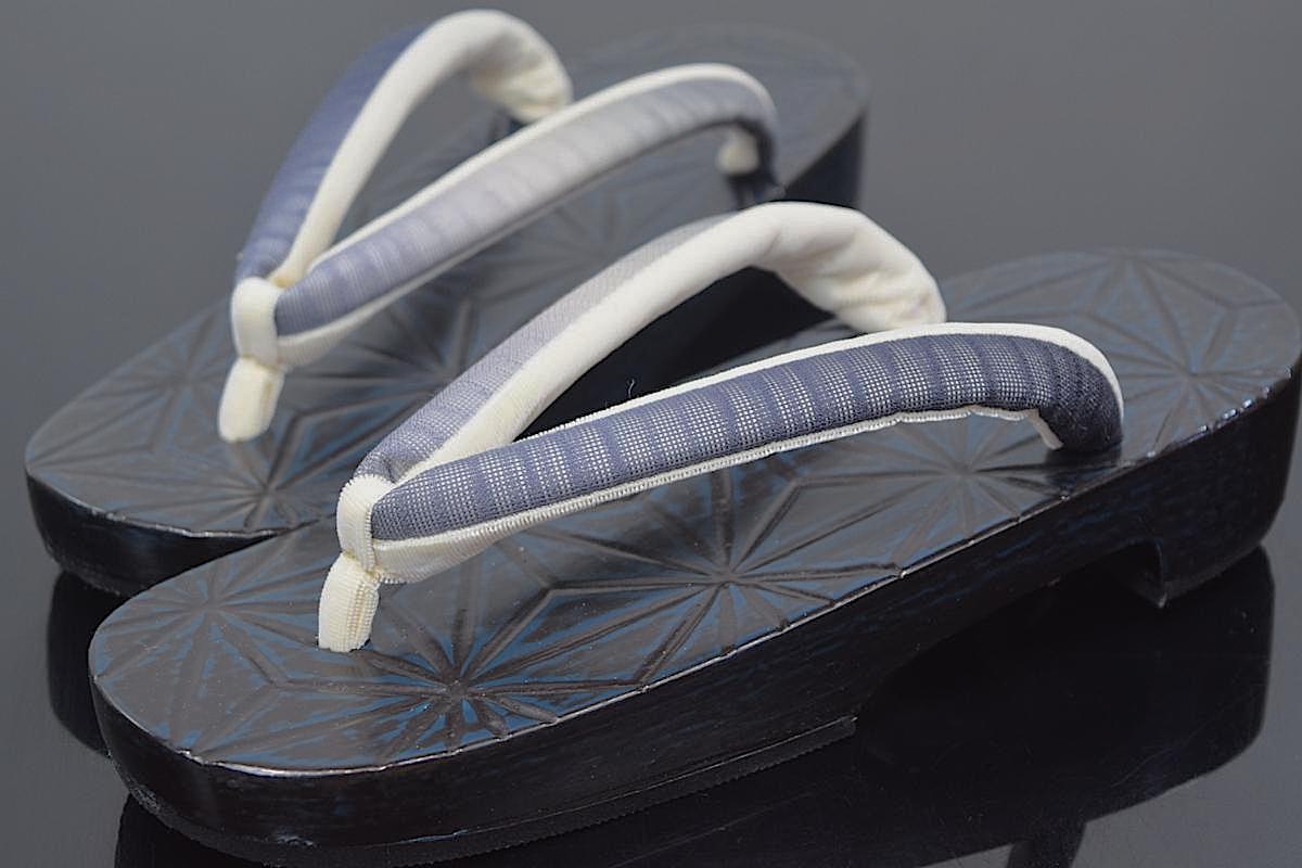 【鎌倉彫最高級桐下駄】【大人の下駄】【日本製】【夢衣】「鎌倉彫・右近・麻の葉」(グレーぼかしの紗合わせ)(Fサイズ)