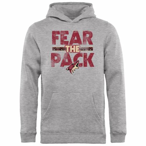 FANATICS BRANDED アリゾナ 子供用 コレクション 【 FANATICS BRANDED ARIZONA COYOTES YOUTH HOMETOWN COLLECTION FEAR THE PACK PULLOVER HOODIE ASH 】 キッズ ベビー マタニティ トップス