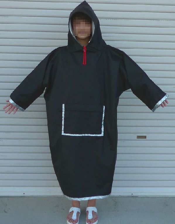 アルミ 保温 レインコート レインポンチョ 【防寒 アルミ 保温 撥水 気密】【軽量 薄手】 黒シルバー暗幕生地 アルミシルバーコーティング暗幕 FT5200使用 【防災グッズ 防災セット 雨除け 雨避け 防寒 レイングッズ レインウェア 雨具 カッパ】 サイズ 着丈:約105cm 袖:約59cm ポケットサイズ (収納時) ヨコ:約31cm タテ:約22cm 内ポケット ヨコ:約24cm タテ:約16cm カラー 黒/シルバー 素材 元生地ポリエステル100% 黒顔料コーティング アクリルアンダーアクリルシルバーコーティング 重量 約240g 特徴 ●コーティングムラ、コーティング筋・キズあり 黒/シルバーの 両面コーティング暗幕生地使用 ●撥水性と気密性あり ●抜群の保温性あり ●うちポケットあり 薄手・軽量・コンパクト収納のアルミ保温レインコートです。
