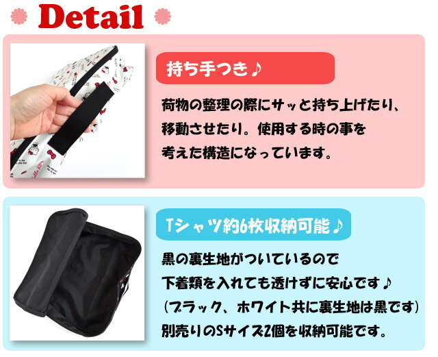ロゴとキティが散りばめられたシンプルで大人かわいいデザインの衣類収納ケースが登場! 大人からお子様まで幅広くお使いいただけます! 衣類をスッキリ収納できる、旅行に最適なケースです! スーツケースやバッグ類の中を見やすく仕分けする事も出来ます。