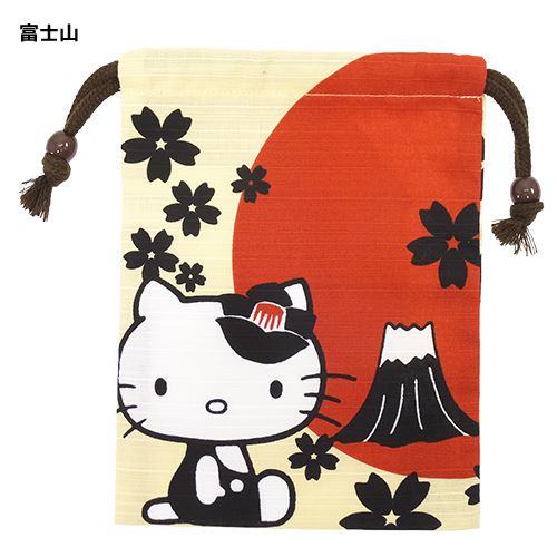サンリオの人気キャラ【HELLO KITTY】グッズにまたまた可愛いnewアイテム登場!!こちらはシャンタン生地の和風きんちゃくつむぎのような節があって趣のあるシャンタン生地和テイストのデザインで海外の方のお土産に喜ばれること間違いナシ♪