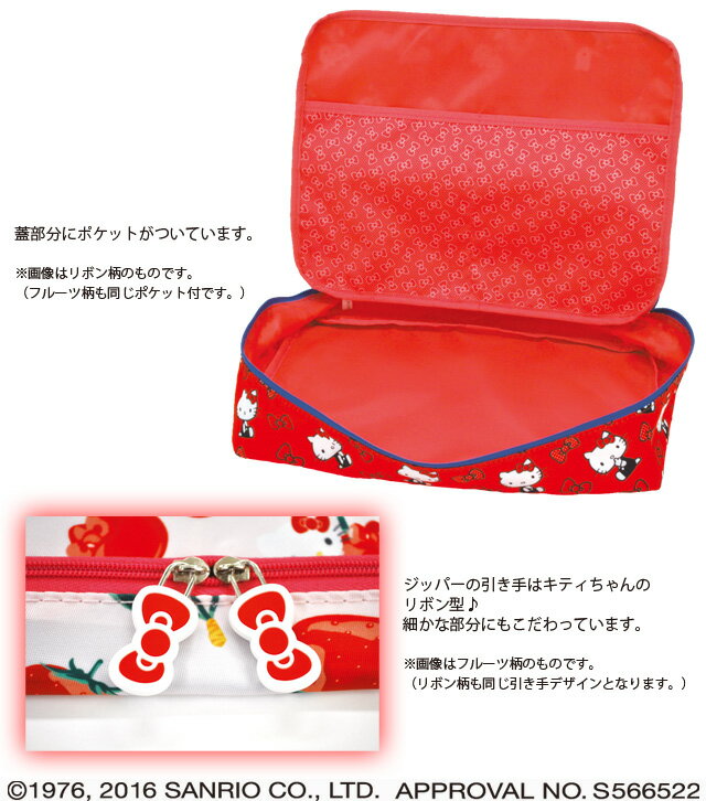 内側生地にもキティちゃんのモチーフがプリントされています。